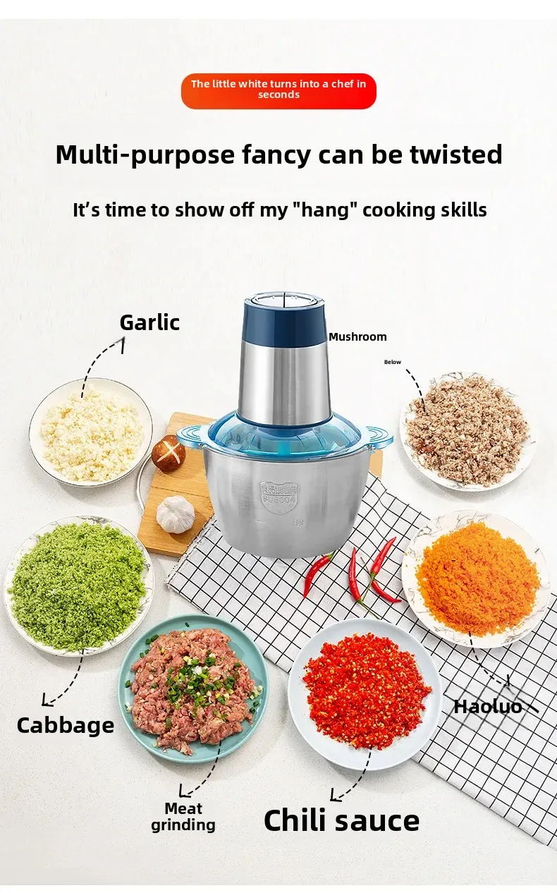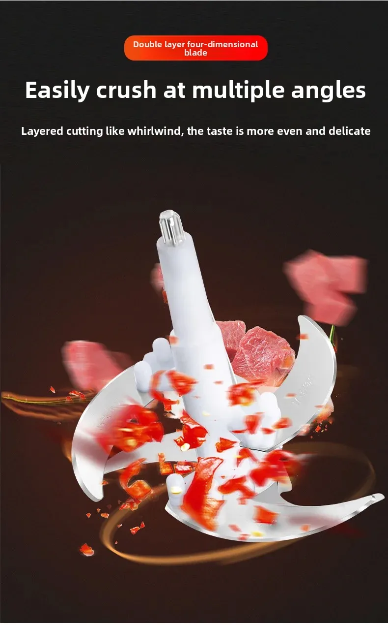 • Design multifuncional:Este moedor de carne elétrico não é apenas para moer carne, mas também perfeito para misturar bolinhos e recheios, tornando-o um utensílio de cozinha versátil.